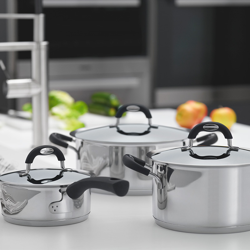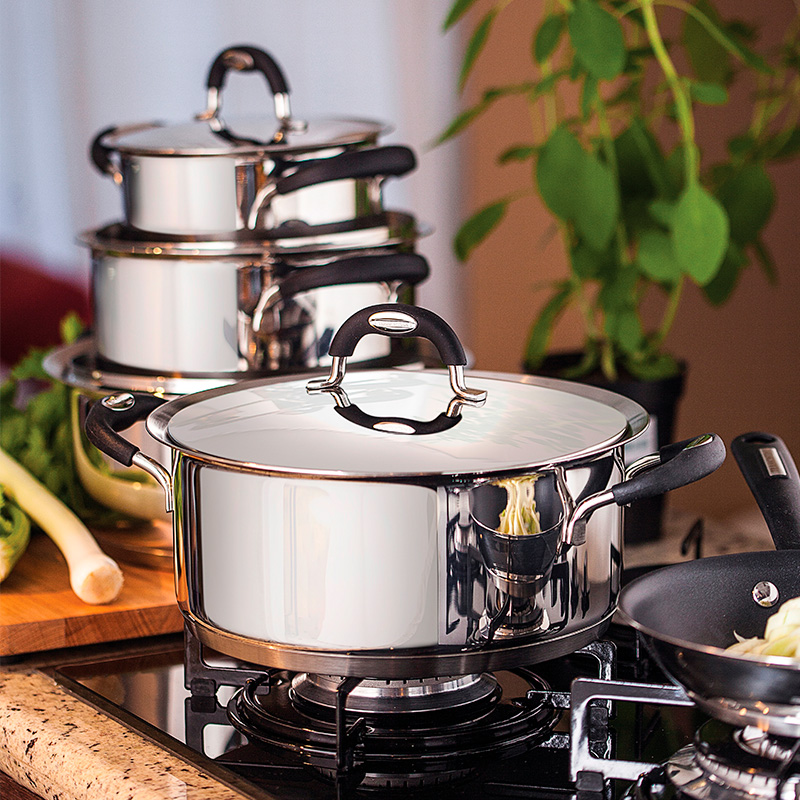 Contamos con una línea de ollas ideales para el hogar, con material de acero inoxidable que no suelta partículas y es higiénico, con excelente conductor de calor, mantienen la temperatura uniforme. Sartenes antiadherentes, ollas a presión.